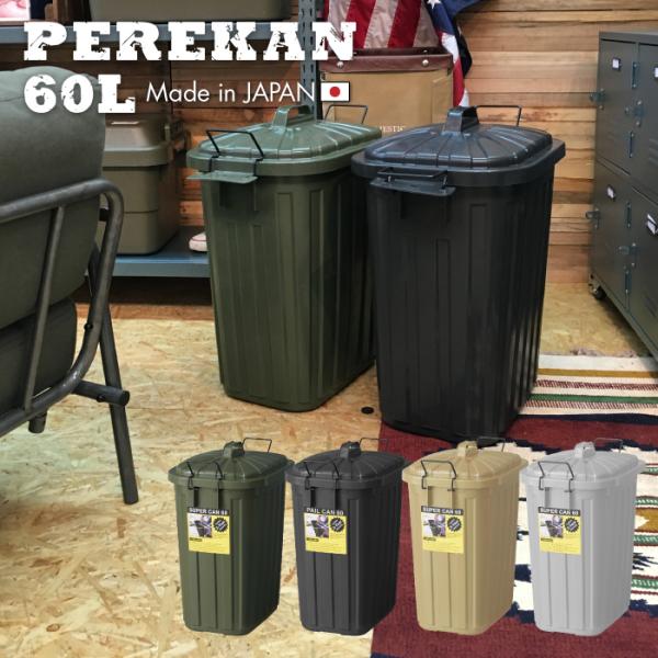 ペールカン スーパーカン デザイン 60L フタ付き 大型 ゴミ箱 おしゃれ ダストボックス 日本製 ふた付き アウトドア US 男前 LFS-937GR LFS-937BK