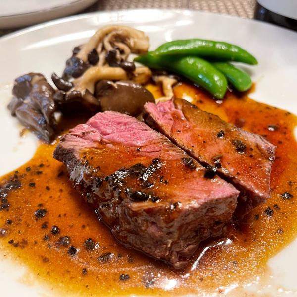 大根おろしやすりおろし玉ねぎの和風のステーキソースも美味しい。