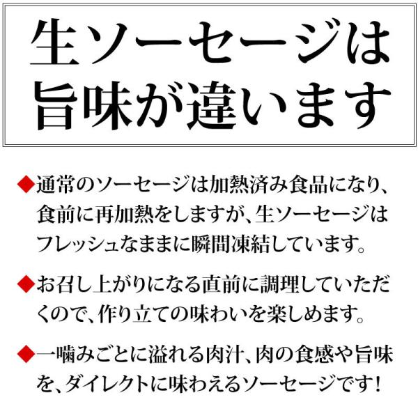 生ソーセージですので、必ず中まで完全に火を通してお召し上がりください。