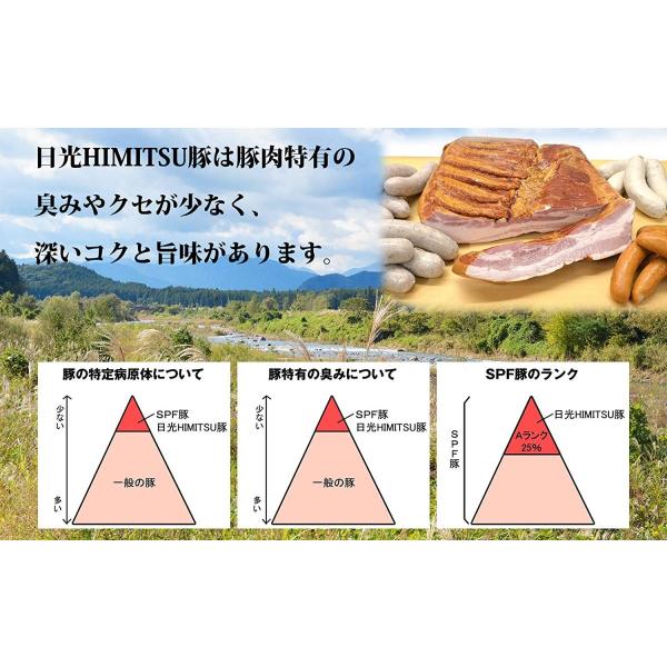 豚肉(日光HIMITSUひみつ豚)、食塩(ミネラルハーヴェスト塩)、香辛料、糖類(ブドウ糖、砂糖)羊腸 / 調味料(アミノ酸)、リン酸塩、酸化防止剤