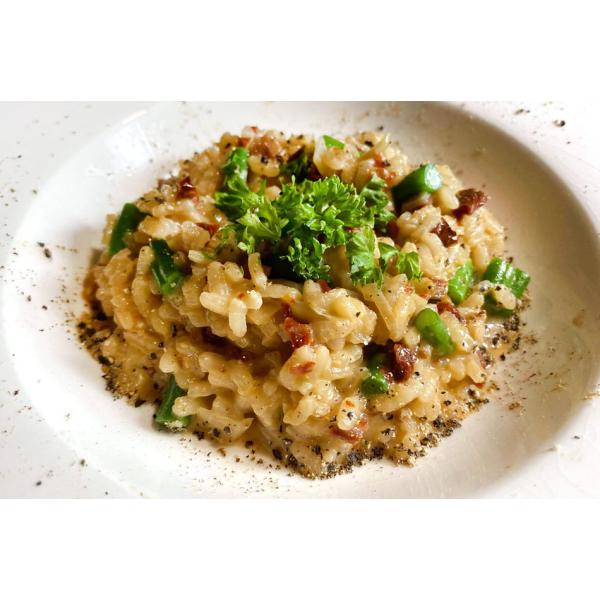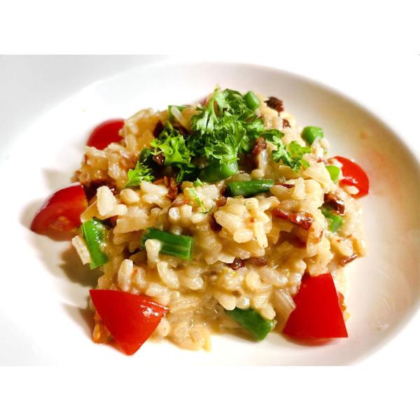 リゾットに最適のイタリア米・カルナローリ種を日本で栽培。柔らかくなりすぎず、しっかりとしたアルデンテの歯ごたえが楽しめます。リゾットやパエリアにどうぞ♪
