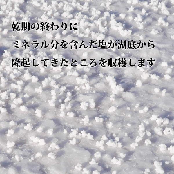 大昔に海洋からの塩分が大陸内部に運ばれて体積された塩湖から収穫される塩ですので、マイクロプラスチック汚染問題にも無関係の自然塩です。