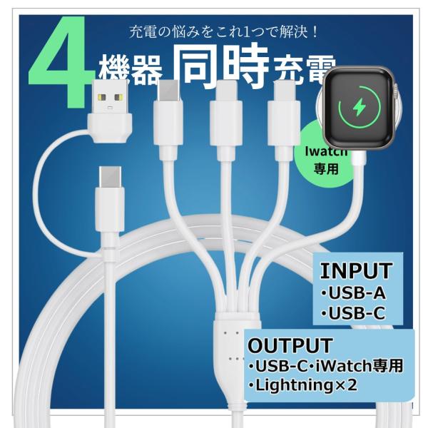 CHAFON 4in2マルチ充電ケーブル 1.2m ワイヤレス AK005 USB C A to iWatch 急速充電 同時充電 apple watch チャフォン Lightning