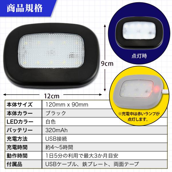 車内 ルームランプ LED ライト マグネット 吸着 USB 充電