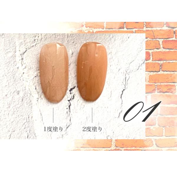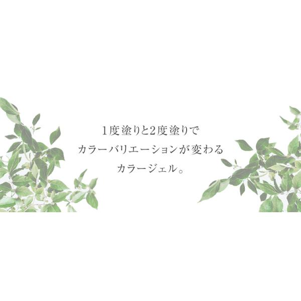 商品説明:1度塗りと2度塗りでカラーバリエーションが変わるカラージェル。