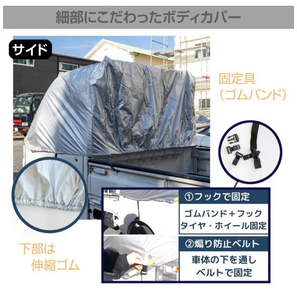 軽トラック専用設計で、隙間なく深く被せることができます。