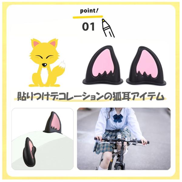 ヘルメット アクセサリー キツネ 狐耳 左右セット PC製 全4カラー CZ-MM03 | 後付け 飾り ネコ耳 猫耳 装飾 カワイイ ヘルメット 飾り 装飾 バイク 自転車