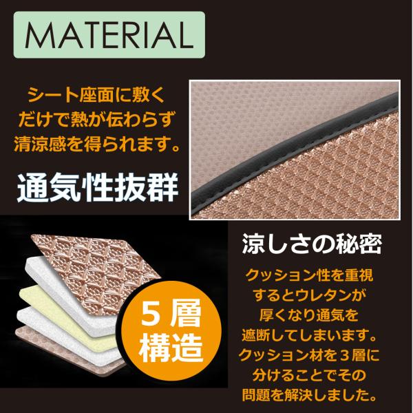 ・こだわりの5層構造で涼しさや通気性を確保したままクッション性を確保しました。