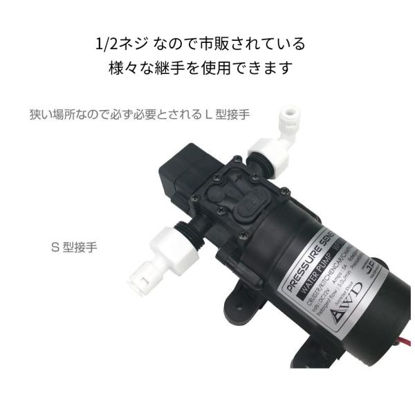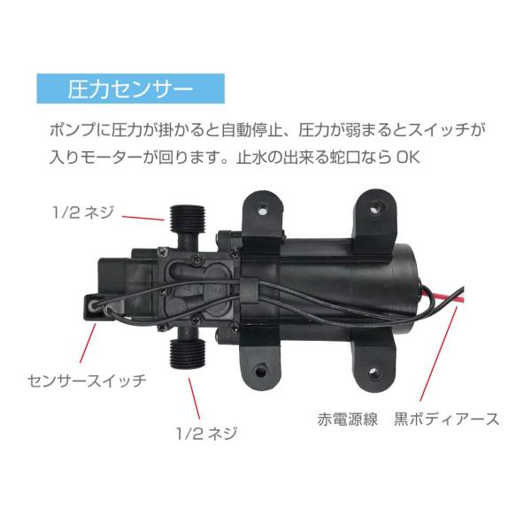 ※DC12Vウォーターポンプ内の圧力スイッチは一時的な使用にしか耐えられません。