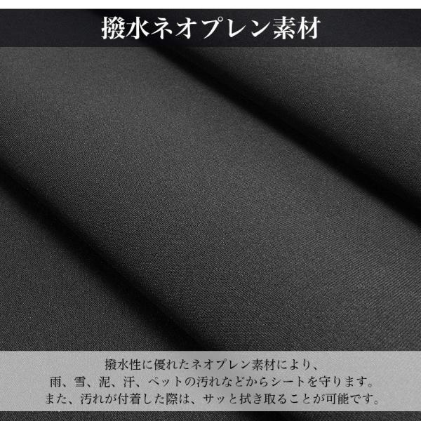 撥水性に優れたネオプレーン素材により、雨、雪、泥、汗、ペットの汚れなどからシートを守ります。