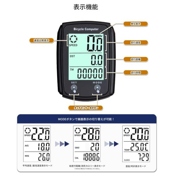 【並行輸入品】 サイクルコンピューター 速度計 自転車 防水 バックライト 多機能 有線 走行距離 計測 時計 夜間