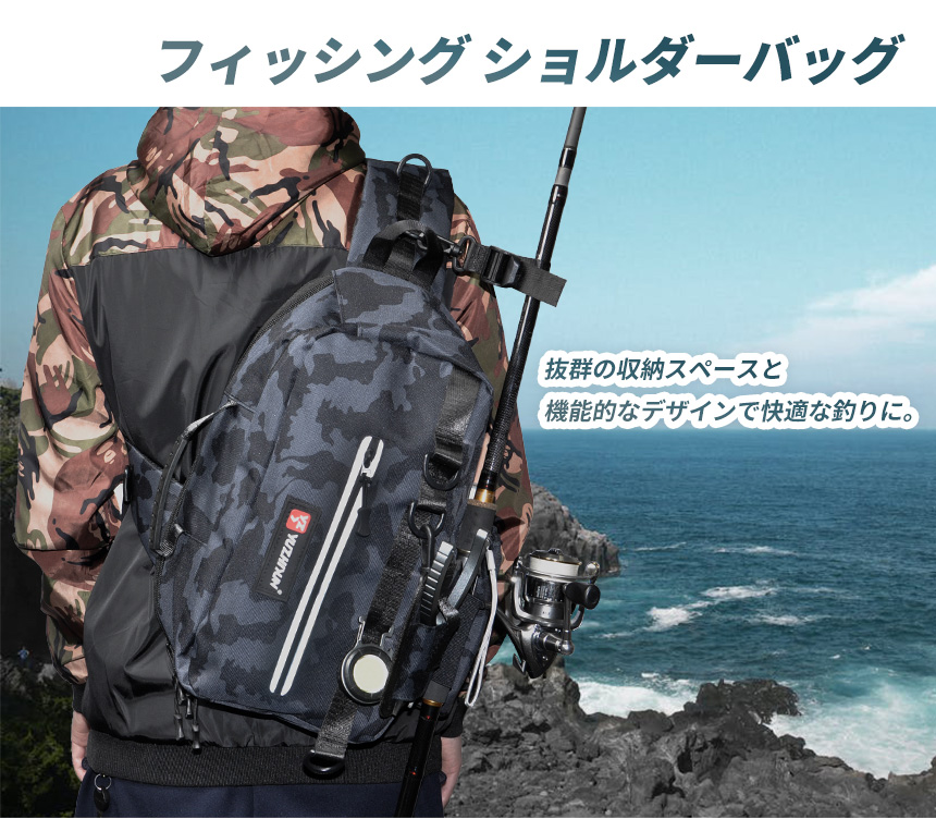 フィッシング バッグ 釣り ショルダーバッグ ランガン カバン 大容量 多機能 ロッド ホルダー 迷彩 ナイロン 軽量 ハンドバッグ