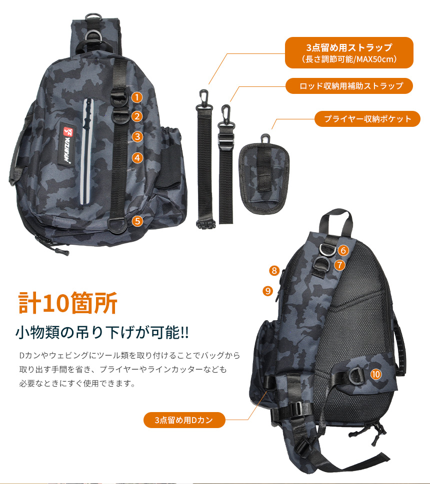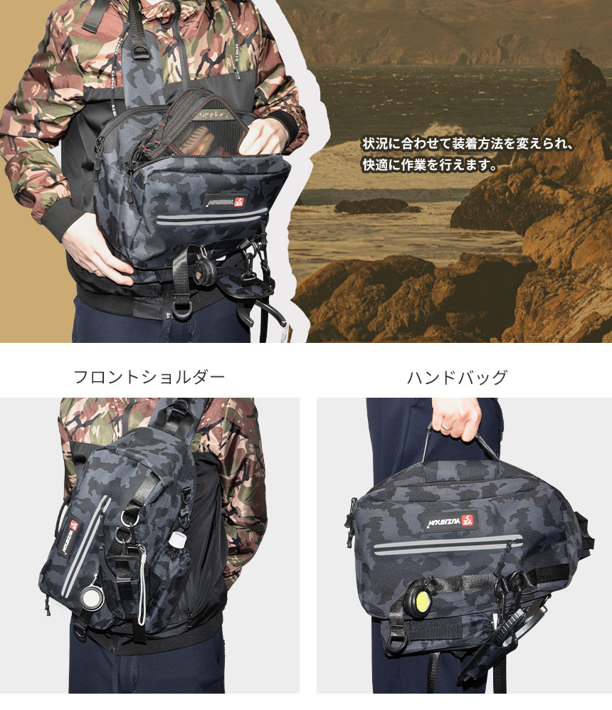 ハンズフリーの軽快なランガン、オカッパリでのフィッシングを楽しめます。