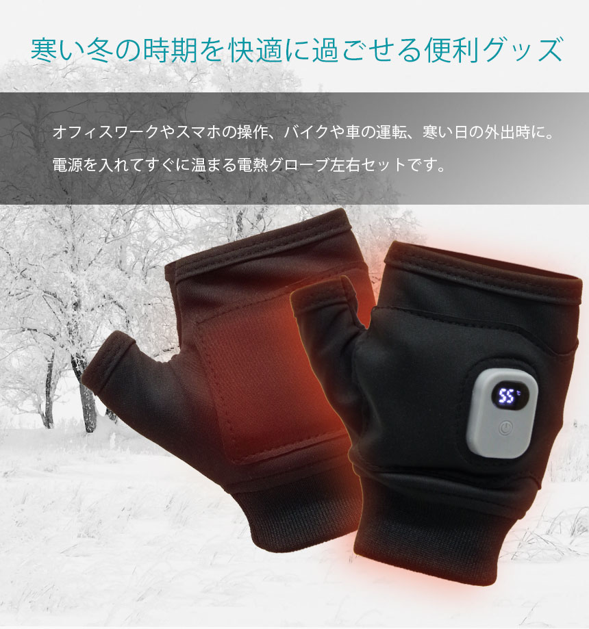 電熱 グローブ 左右セット USB 充電式 ヒーター 手袋 コードレス 暖かい 防寒 タッチパネル対応 温度調整 オフィス デスクワーク 作業用 運転