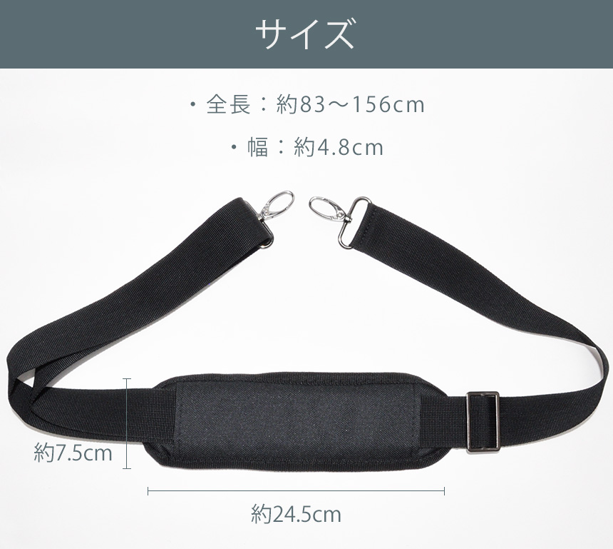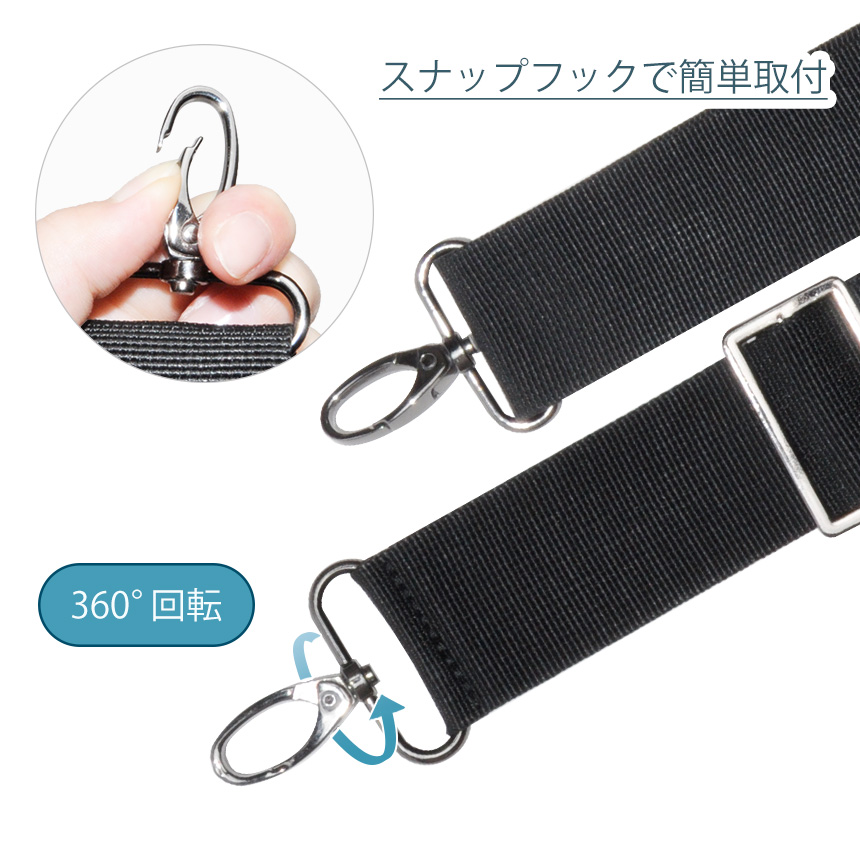 ショルダーストラップ 太め ショルダーベルト バッグ 付け替え 肩パッド 鞄 アクセサリー 調節可能 ナスカン スナップフック カバン 黒