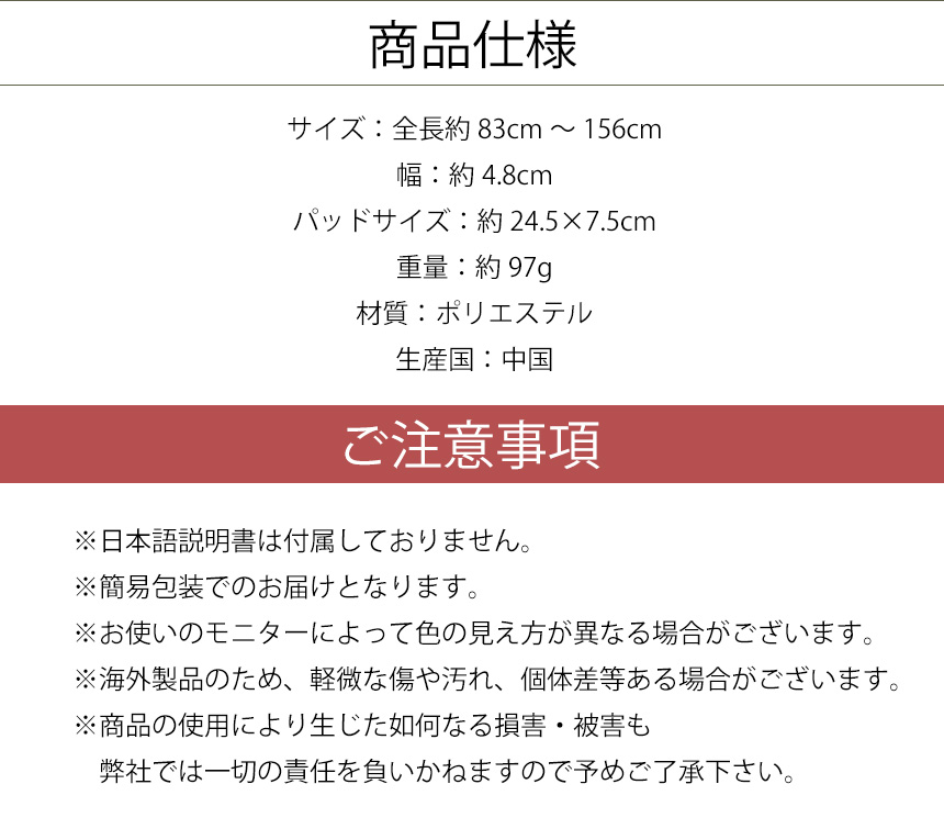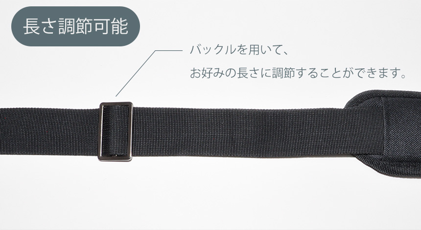 バックルで長さを83〜156cmまで調節することができます。