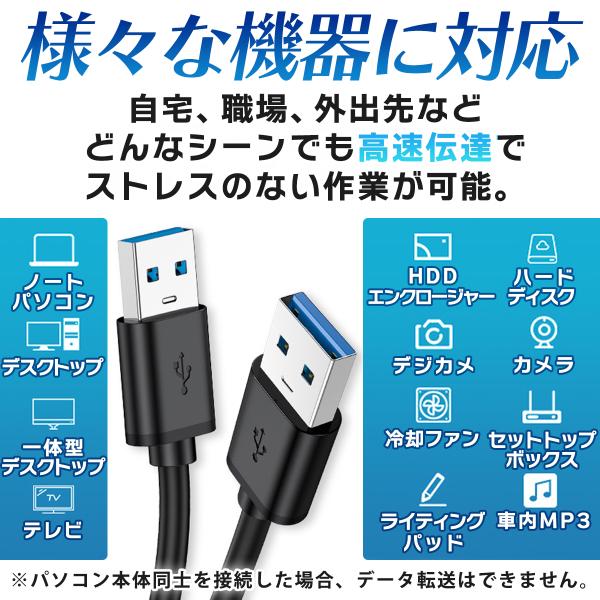 USBケーブル オスオス USB3.0 タイプA type-A PC データ転送 充電ケーブル
