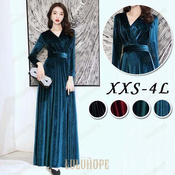 ドレス 大人 ピアノ発表会 演奏会 黒 袖付き ベルベット 長袖 ロングドレス 母親 結婚式 韓国 ロング 小さいサイズ XXS XS 4L 体型カバー 謝恩会 卒業式 花嫁 合