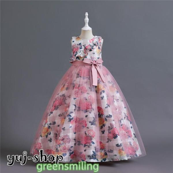 ロングドレス 子供ドレス ピアノ発表会 フォーマルドレス ジュニアドレス 子どもドレス 結婚式 女の子 ドレス キッズ ワンピース 花柄