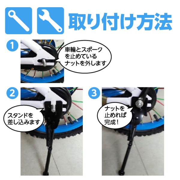 自転車 スタンド 12 14 16 18 20 インチ 子供用 幼児用 片足 取り付け簡単 キックスタンド サイドスタンド