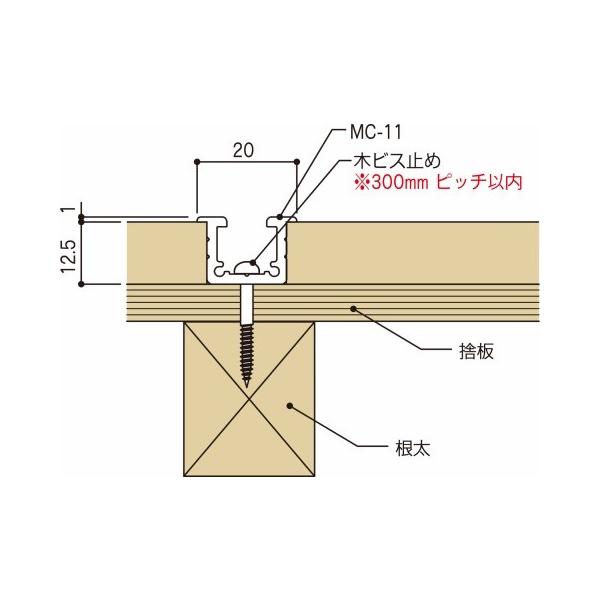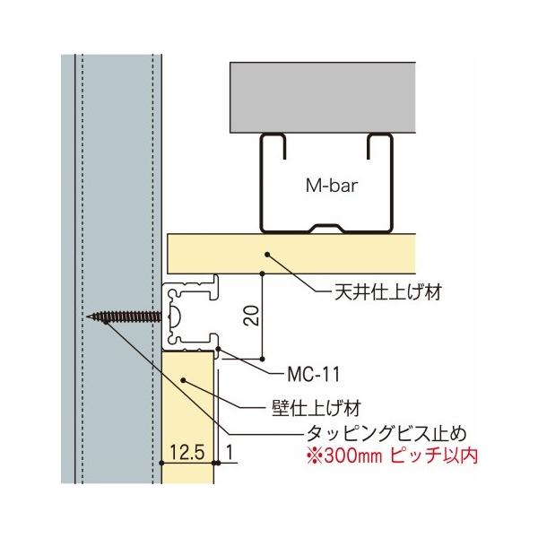 MC-11は先付け30kgタイプのピクチャーレールです。この商品は天井・壁面・床に先付けできるピクチャーレールで最大30kgまで吊るすことが出来ます。