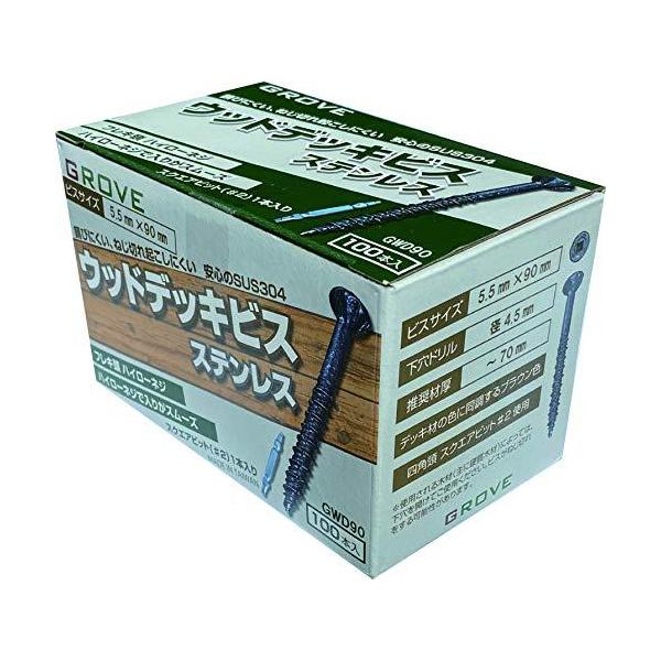 GROVE ウッドデッキビス ステンレス SUS304 (ビス長さ, φ5.5×90mm 100本入) GWD90