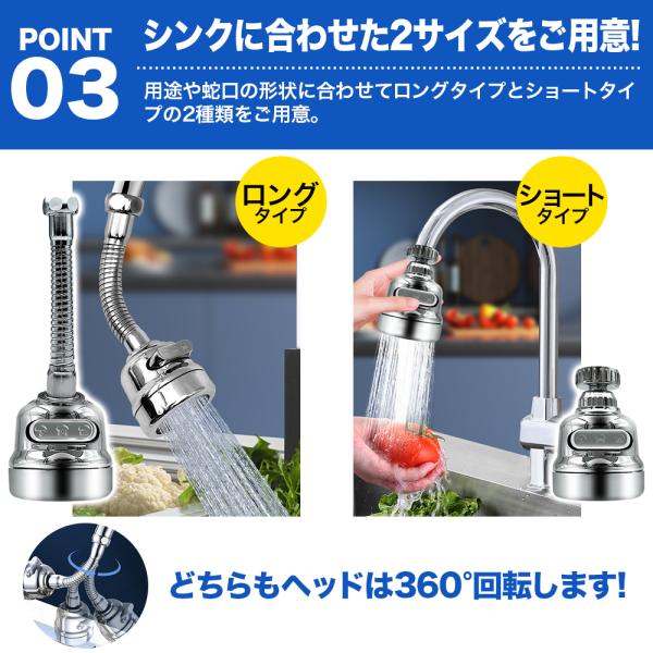 蛇口 シャワー キッチン ロング ショート シャワーヘッド 水栓 延長 交換 水道 切り替え 節水 360° 首振り 水洗 切り替え 洗面所 水漏れ アタッチメント 掃除