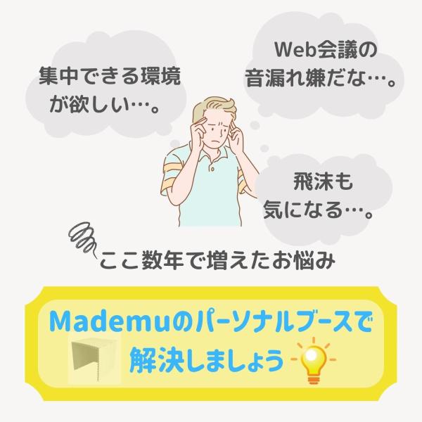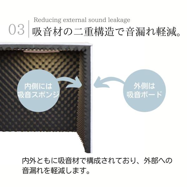 ・吸音効果のある二層構造の壁で、オンラインミーティングの際の音漏れや、周囲の音を軽減する効果があり、作業効率をアップさせてくれます。