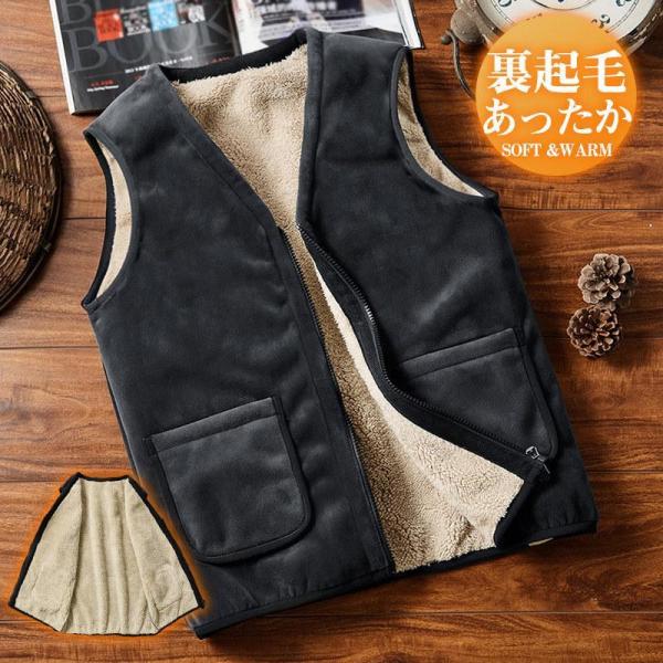 2点300円off ボアベスト メンズ 裏起毛 裏ボア インナーベスト チョッキ 中綿ベスト フリース Vネック 一部 無地 防寒 保温 あったか 軽量 前開き 春 秋 冬