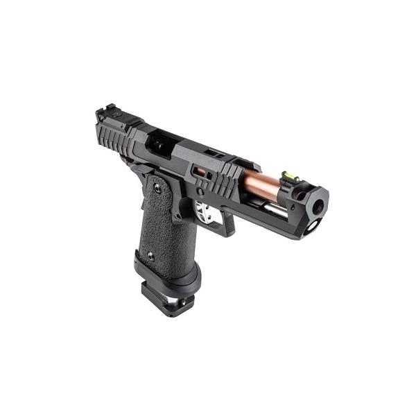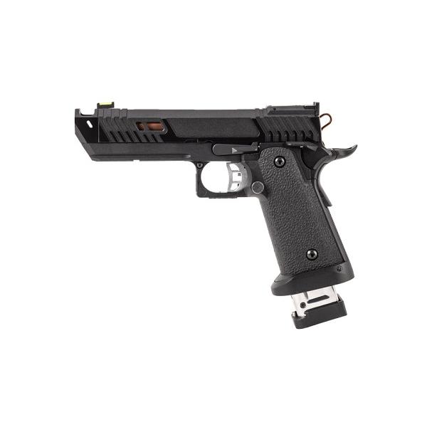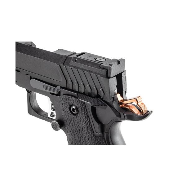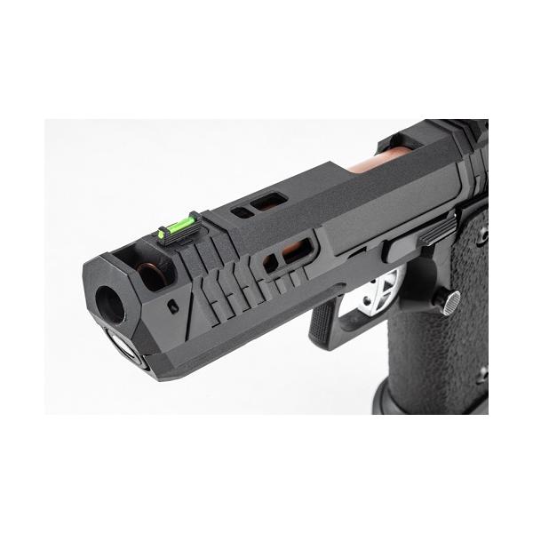 BATON CO2ガスブローバック、2011シリーズの第四弾はJW4で使われるガンをモデルアップしたBT-PIT VIPER CO2ガスブローバック。外装パーツほぼすべて新設計でそのフルカスタムを樹脂スライドで再現するだけでなく、新開発2011 CO2マガジン Type-NTLを標準装備し実射性能も向上している。