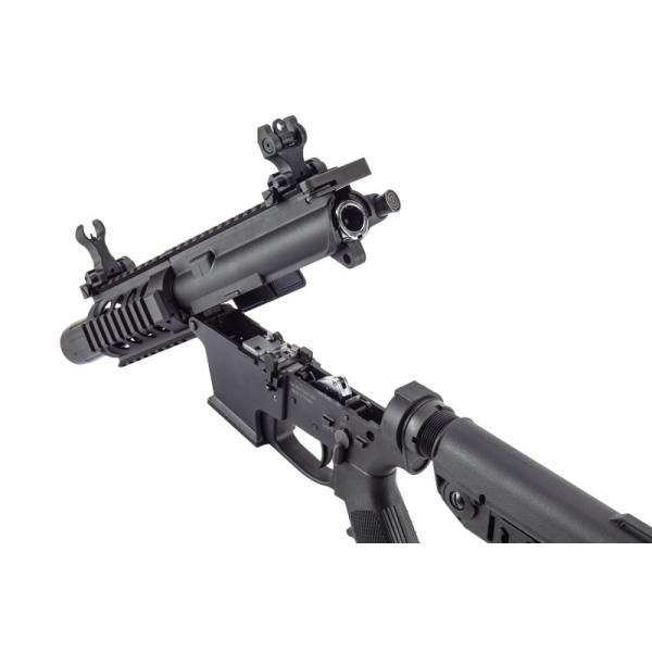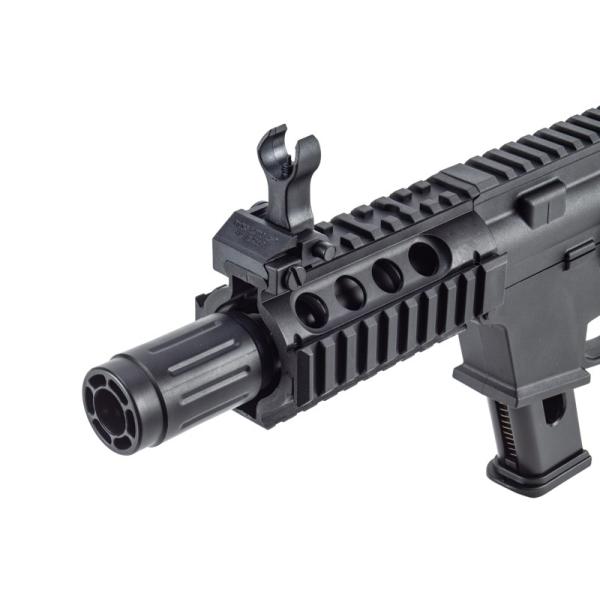 PCCとはピストルキャリバーカービンのことでピストル弾を使うライフルを意味する。BG-PCC Lite は上下レシーバーを強化樹脂製とすることで1.9kgと大幅な軽量化、そして低価格化を果たし、より鮮烈なCO2ブローバックのリコイルショックを手軽に楽しめるモデル。