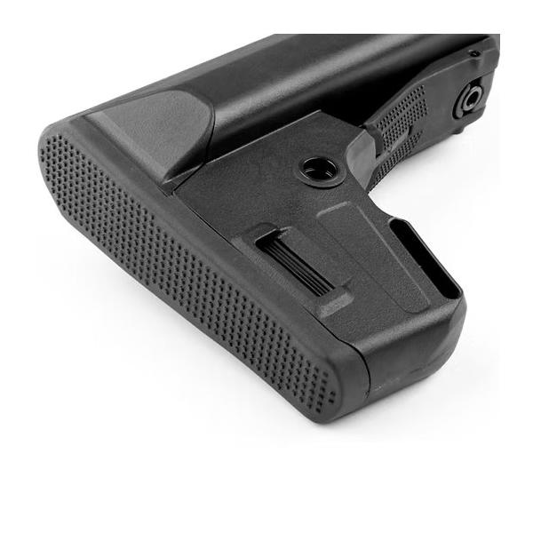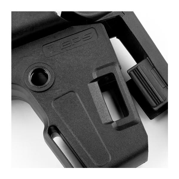ストックには複数のスリング取り付けオプションが備わっており、両側にQDスイベルソケットとループ式スリング用パススルーチャネル、ストックのバット部分前面にスリングスロットが配置されています。EPSストックはほぼ全てのAEGおよびGBBR用バッファーチューブに対応しています。