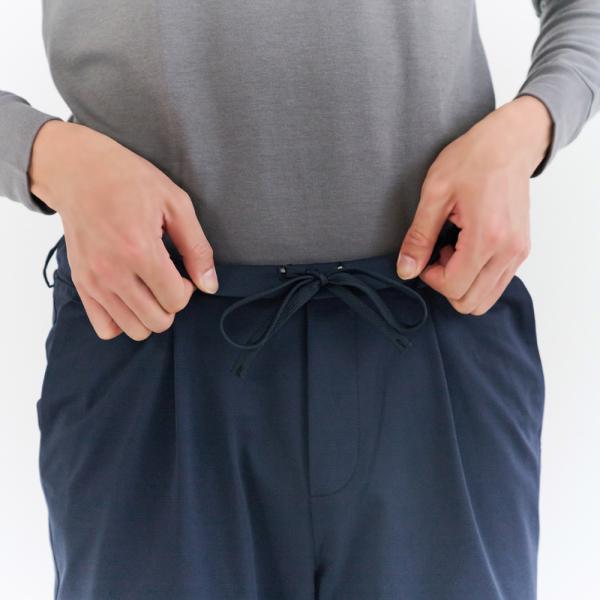 ・ウエストゴム仕様、きちんとした前開きパンツに見えるデザイン