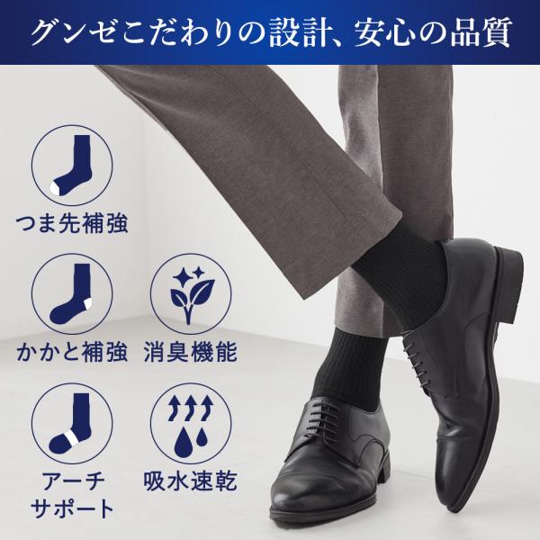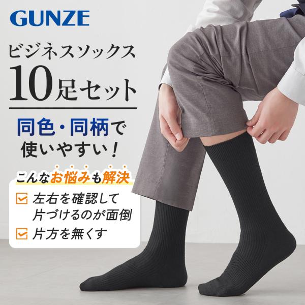 15日9時までタイムセール グンゼ 靴下 メンズ 10足組 セット 消臭 吸水速乾 つま先補強 かかと直角 ビジネス クルー丈 FE0110 25-27cm