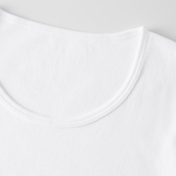 首元がつまっているのが苦手な子どもに向けて襟あき広めの作り。グンゼの通常品(BF650EC)と比較して、前くりが約2.5cm 後くりが約0.5cm 深くなり、首廻りは5.5cmほど長い作りです。