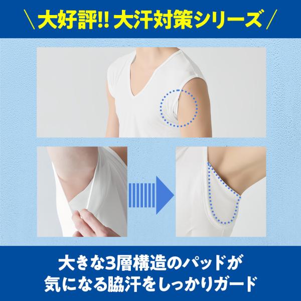 従来品よりも大きな3層構造の脇パッドで、吸水量がさらにアップ!!