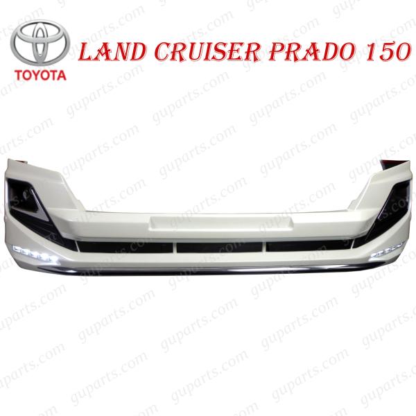 ランド クルーザー プラド 150系 H25.9〜H29.9 フロント バンパー ロア リップ スポイラー LED デイ ライト フォグ クローム メッキ 白