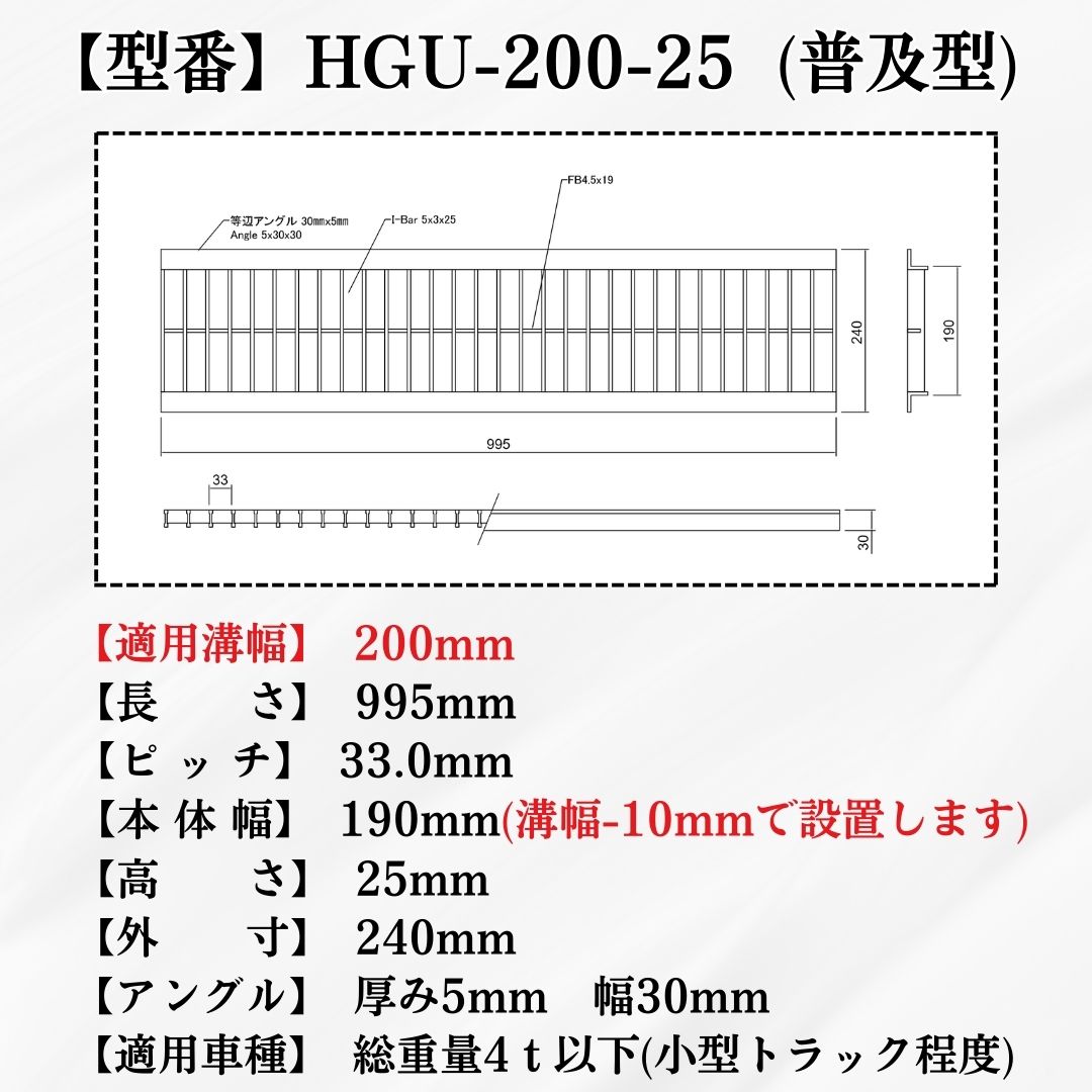 グレーチング U字溝 HGU-200-25 溝幅200mm用 小型トラック荷重 規格 T-4 溝 蓋 側溝 普及型 並目 法山本店