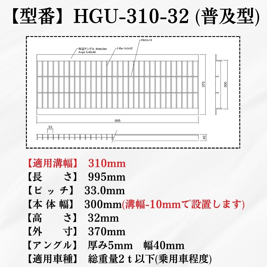 グレーチング U字溝 HGU-310-32 溝幅310mm用 乗用車荷重 規格 T-2 溝 蓋 側溝 普及型 並目 法山本店
