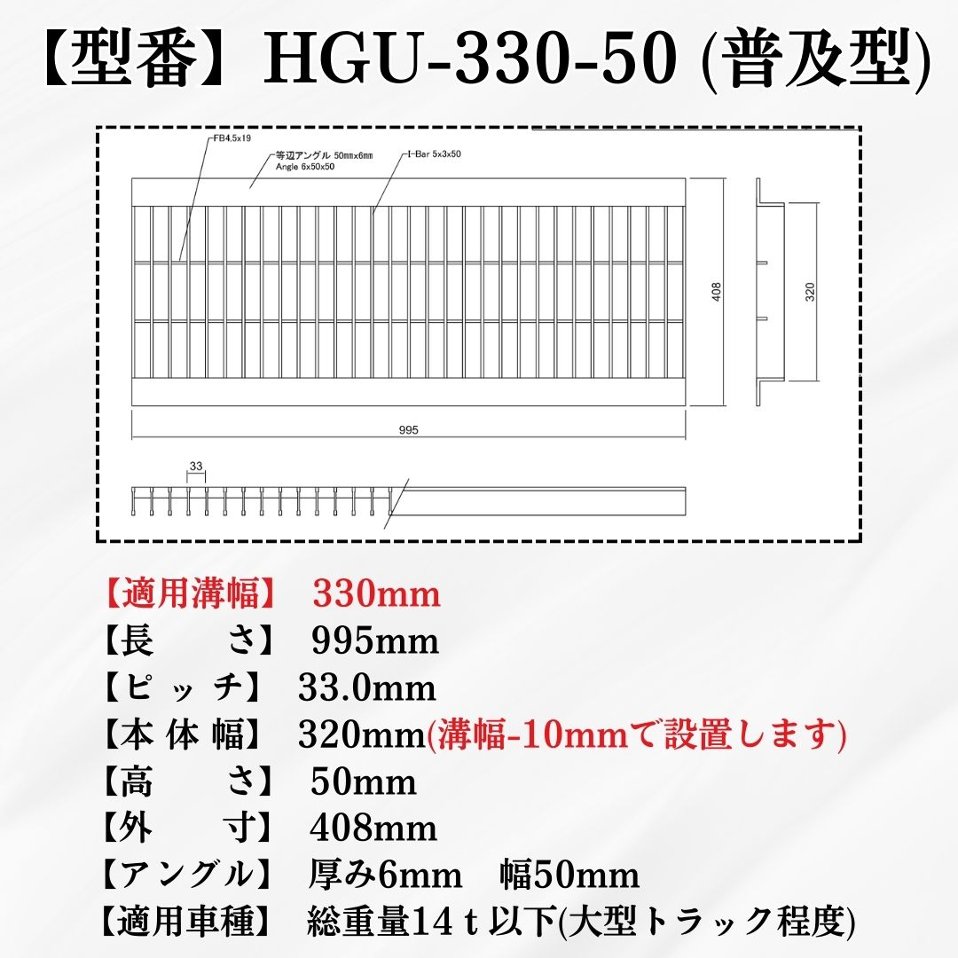 グレーチング U字溝 HGU-330-50 溝幅330mm用 大型トラック荷重 規格 T-14 溝 蓋 側溝 普及型 並目 法山本店