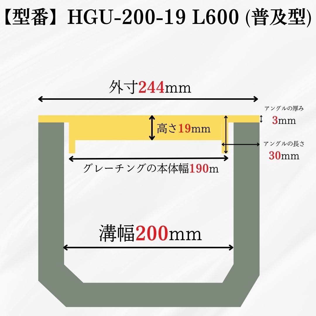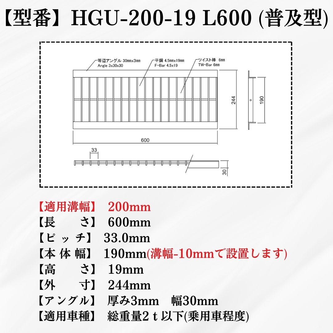 グレーチング U字溝 HGU-200-19L600 溝幅200mm用 乗用車荷重 規格 T-2 溝 蓋 側溝 普及型 並目 L600 法山本店