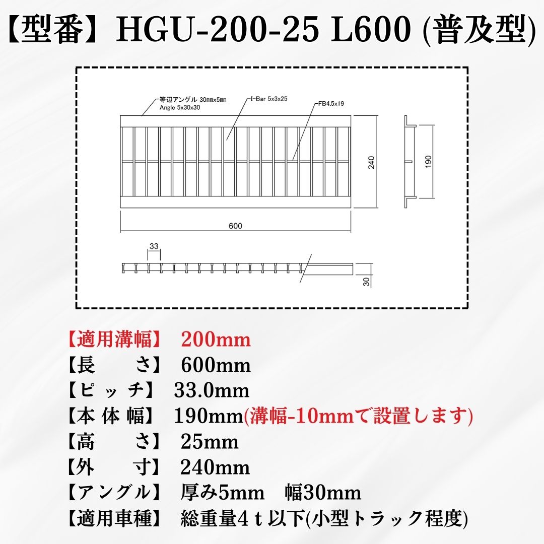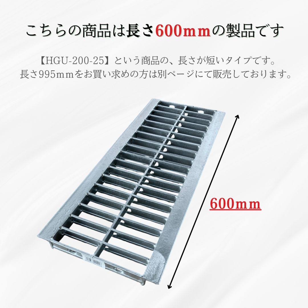 【商品名 U字溝用グレーチング(普及型)HGU-200-25L600】