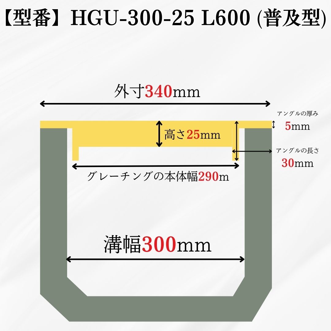 【商品名 U字溝用グレーチング(普及型)HGU-300-25L600】