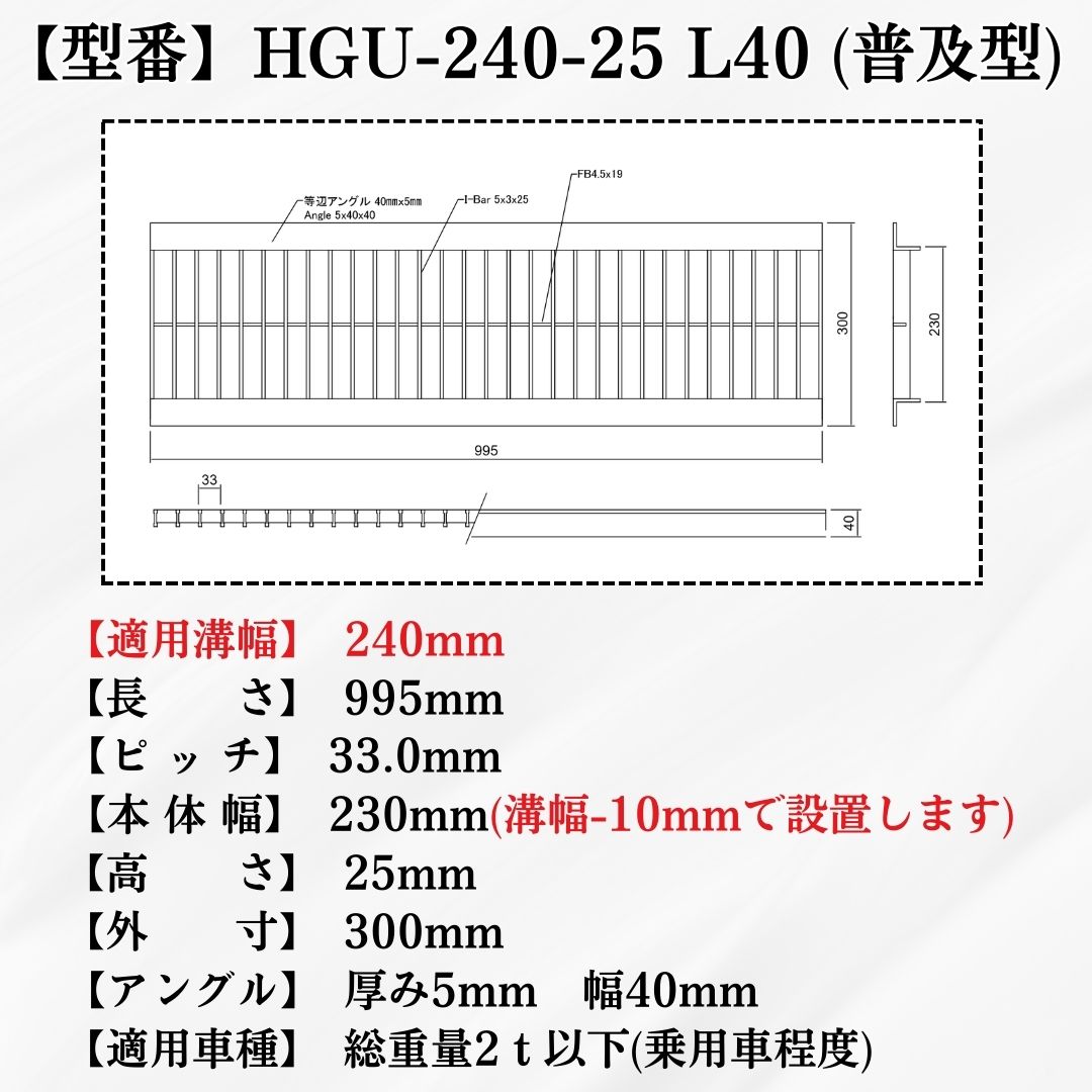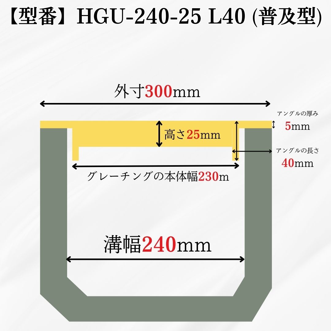 グレーチング U字溝 HGU-240-25L40 溝幅240mm用 乗用車荷重 規格 T-2 溝 蓋 側溝 普及型 並目 法山本店