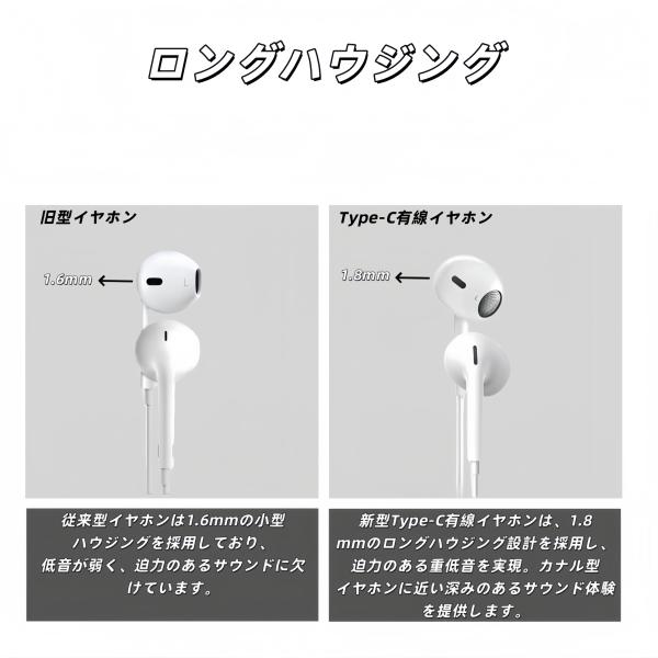Type-C 3.5mm丸型プラグ 有線イヤホン タイプc TYPE-c インナーイヤー型 マイク付 iPhone/Mac/Windows/Android対応