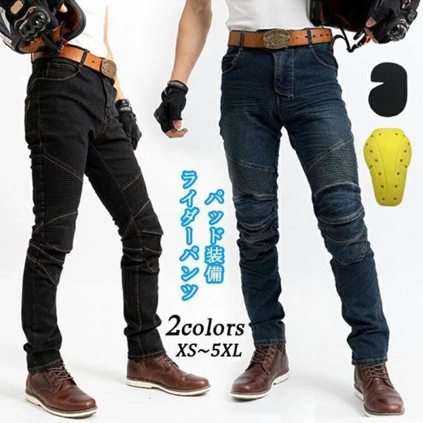 ライダーパンツメンズバイクパンツプロテクター付ジーンズデニムバイクウェアオートバイパッド膝パッド保護レーシングパンツライディングパンツ