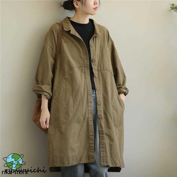スプリングコート レディース 薄手 トレンチコート 春 ゆったり ロング丈 体型カバーアウター コート カジュアル オーバーサイズ 大きいサイズ 春秋