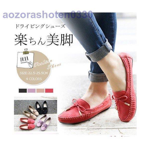 モカシン レディース スリッポン フラットシューズ スエード調 フェイクレザー 無地 リボン 大きいサイズあり ぺたんこ 靴 ドライビングシ