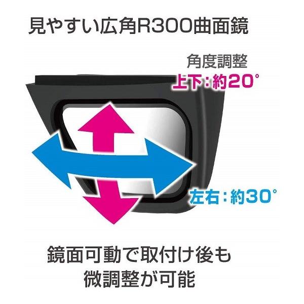見やすい広角R300曲面鏡を採用し、鏡面可動で取付け後も微調整が可能