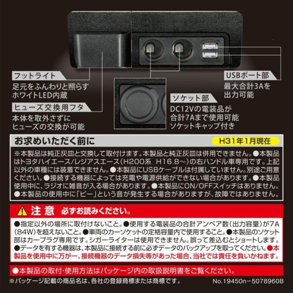 カーメイト NZ586 200系ハイエース電源増設ユニット ハイエース用プレミアム シガー電源x2 USBx2 フットライト付 シガーソケット増設 USB増設 NZ-586